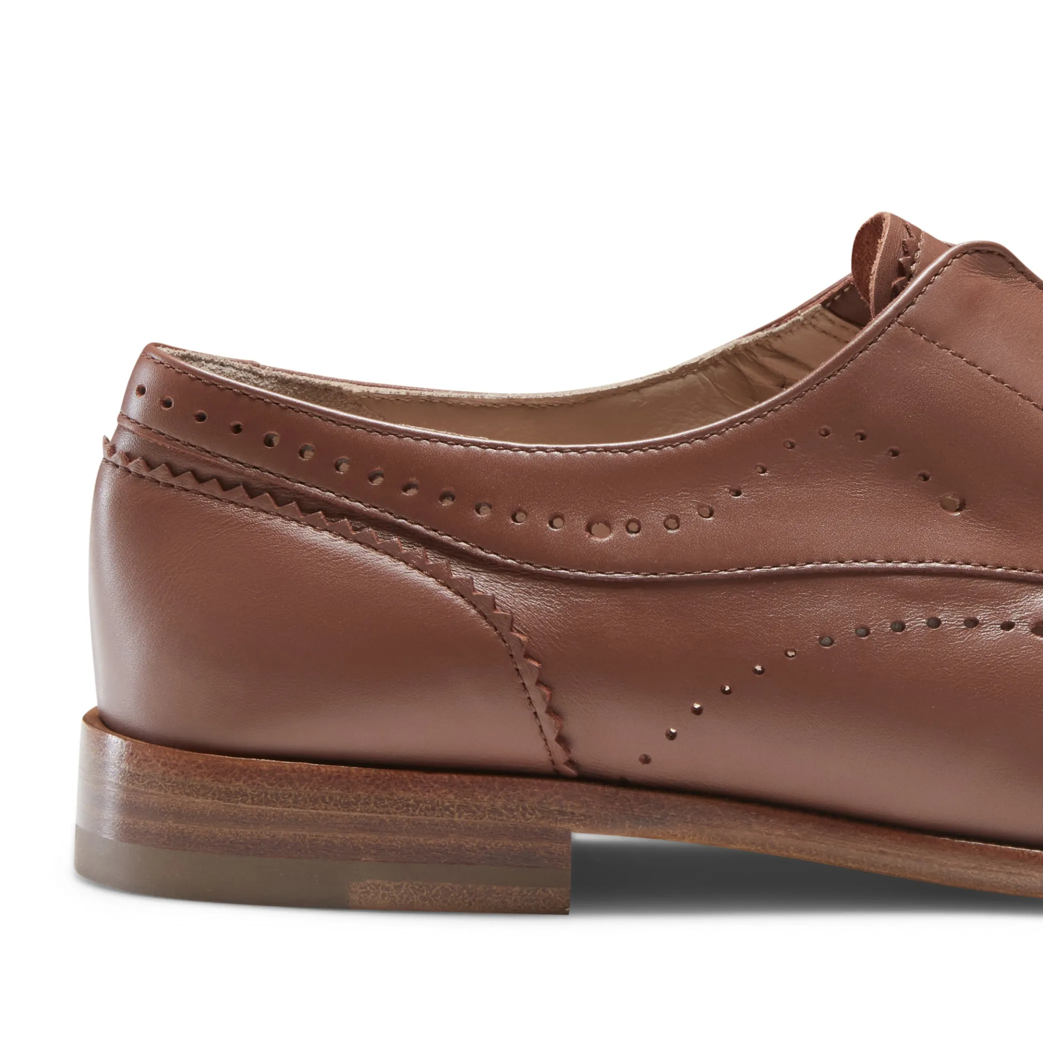 Laceless derby shoe with a slightly elongated shape, made of soft, unlined smooth leather with holes that form a flower on the toe. The perfect combination of androgynous style and refined details.