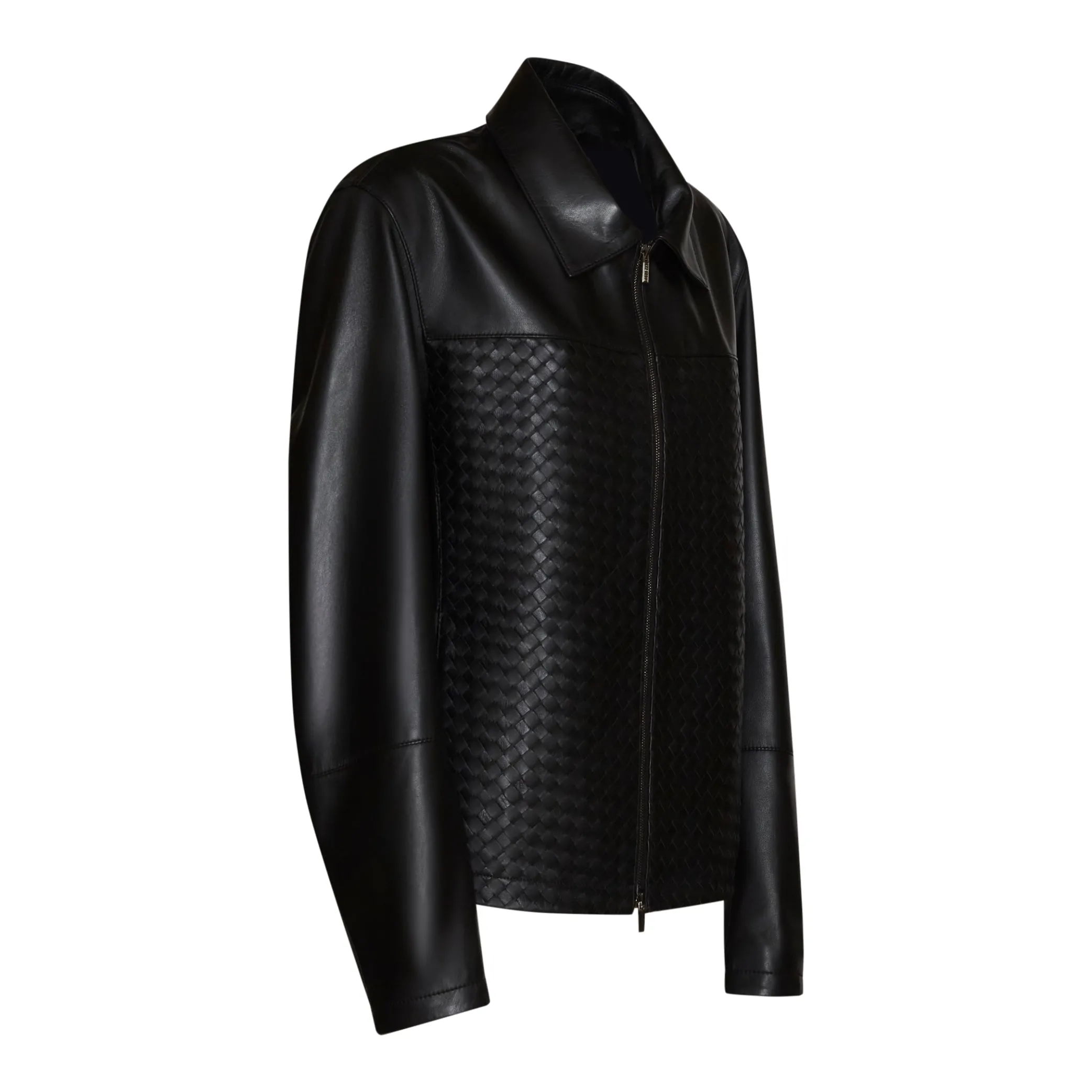 Jacket made of soft nappa leather. The shirt collar and the finely woven nappa leather inserts on the front lend an exclusive, tailored look. Front zip closure with double puller.