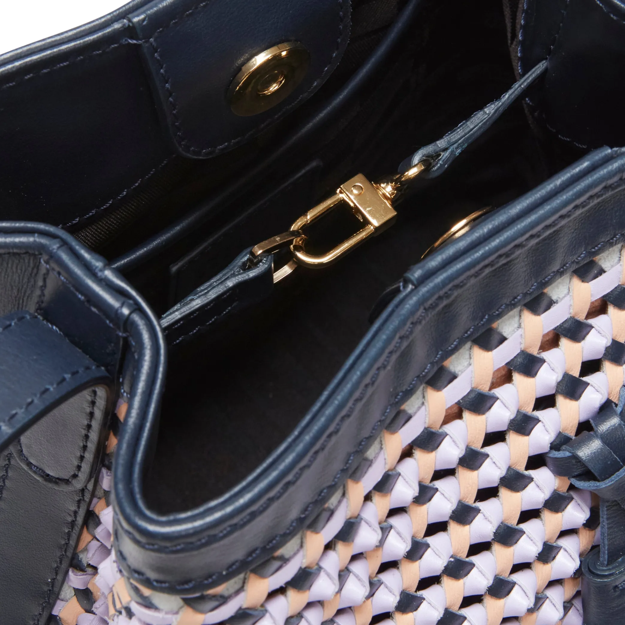 Bucket bag with iconic tassels made of soft leather with a nappa effect. The special woven design is enhanced by small leather knots. Perfect for making any look more chic and exclusive. Drawstring fastening. H21xL21xW13