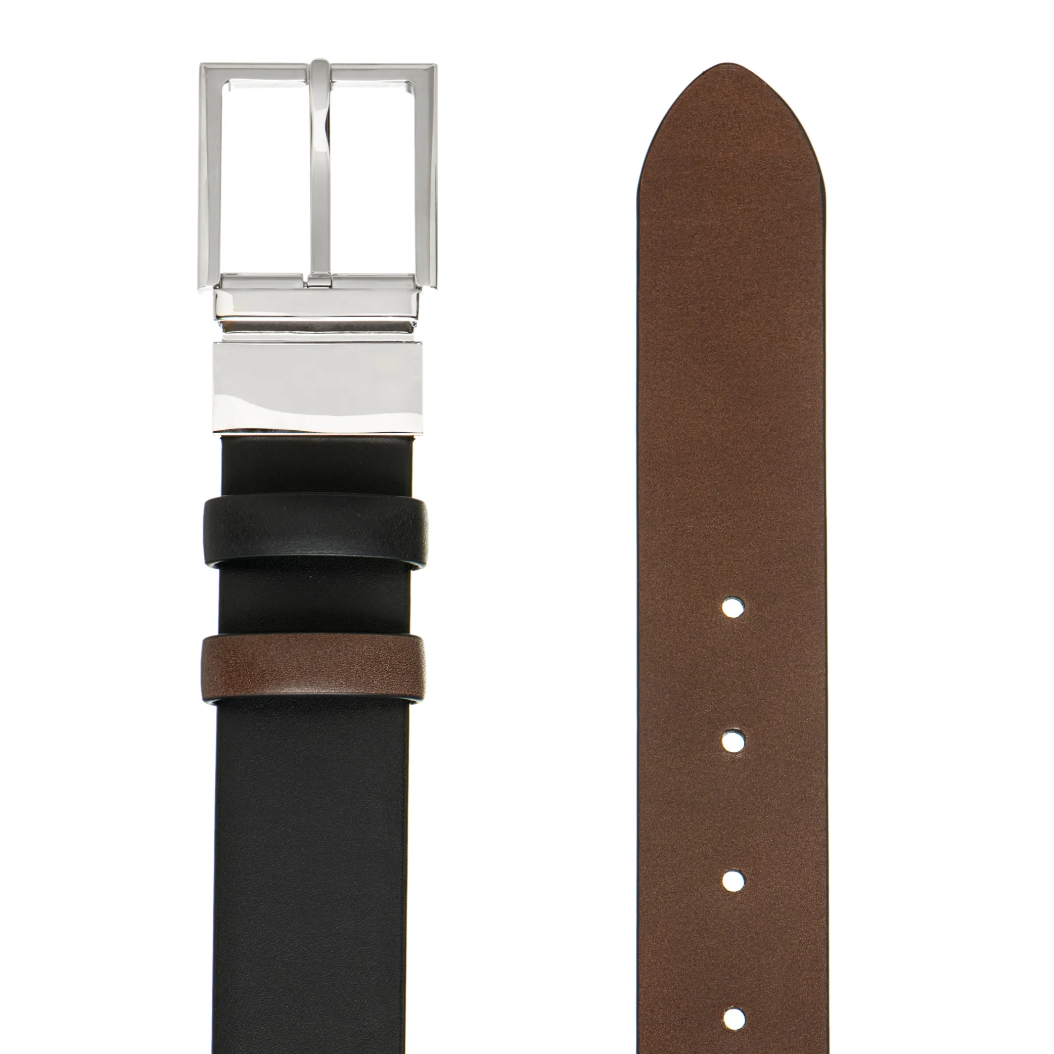 Reversible belt for men made of soft two-tone leather with a shaded appearance created using an artisan coloring process. Palladium buckle with a shiny finish. Height 3,5 cm.