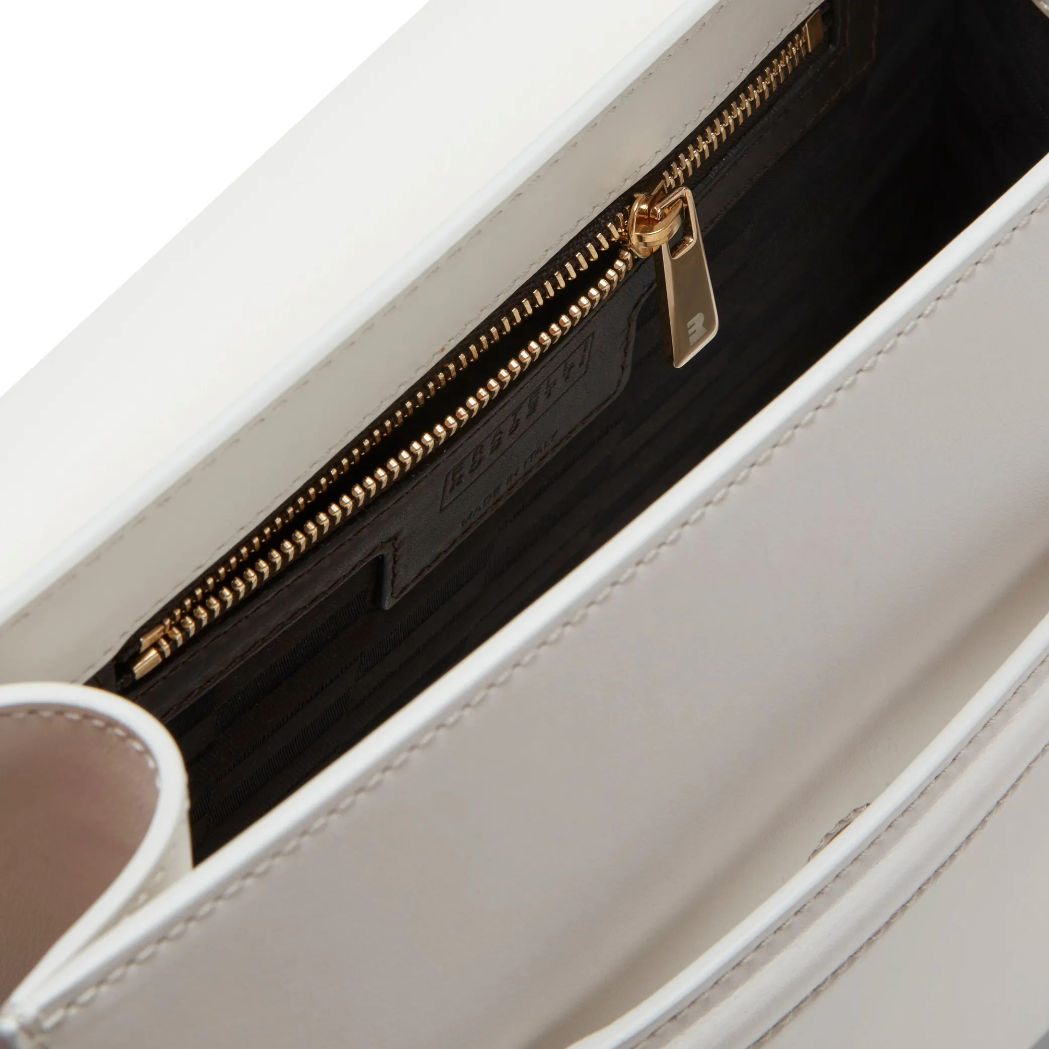 Top Handle bag from the Magenta line made of smooth soft leather. Magnet fastening characterized by the iconic light gold clip. It can be used as a cross body bag. The main compartment contains a small inside pocket with a zip and an outside pocket on the back. Logoed lining. H21xL25xW9