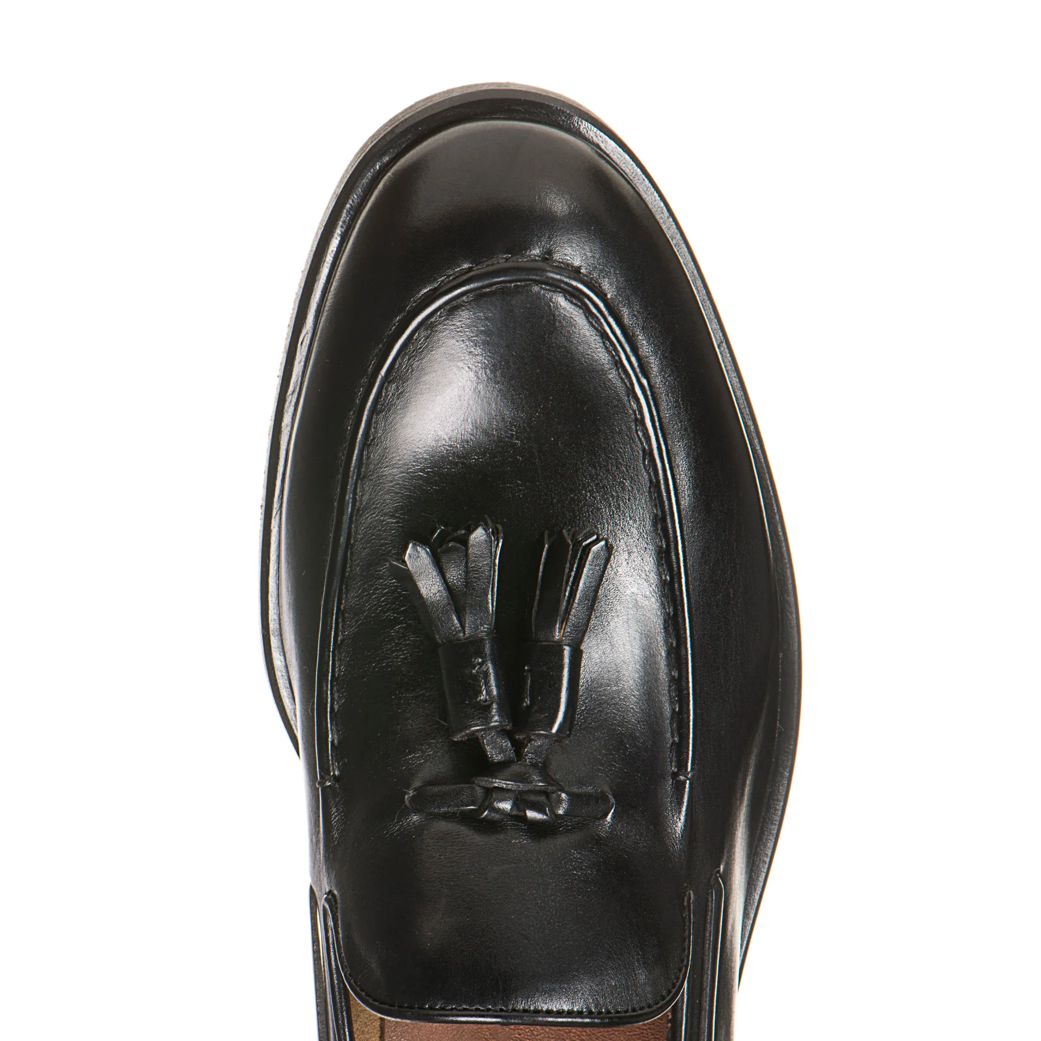 Iconic “Brera” loafer made of soft unlined leather with light and dark effects. Characterized by tassels, visible stitching and the leather loop that follows the profile: attention to detail typical of Fratelli Rossetti design. Leather sole.