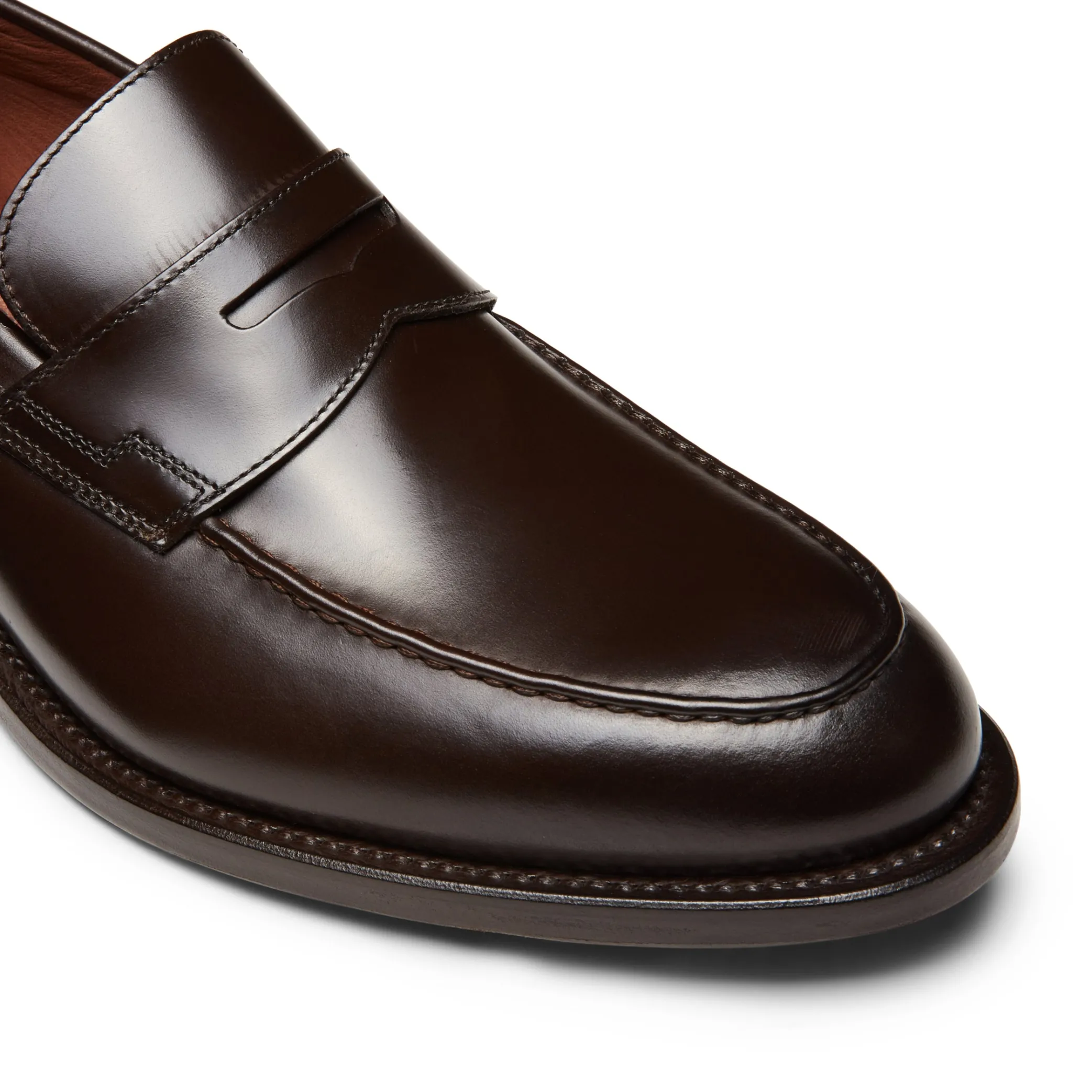 Iconic penny loafer inspired by classic English taste combined with Italian comfort. Made of smooth calfskin with a buffed finish that gives the toe and heel shine and greater intensity. Distinguished by the fine Goodyear welt on the sole, which makes the shoe more structured and comfortable.