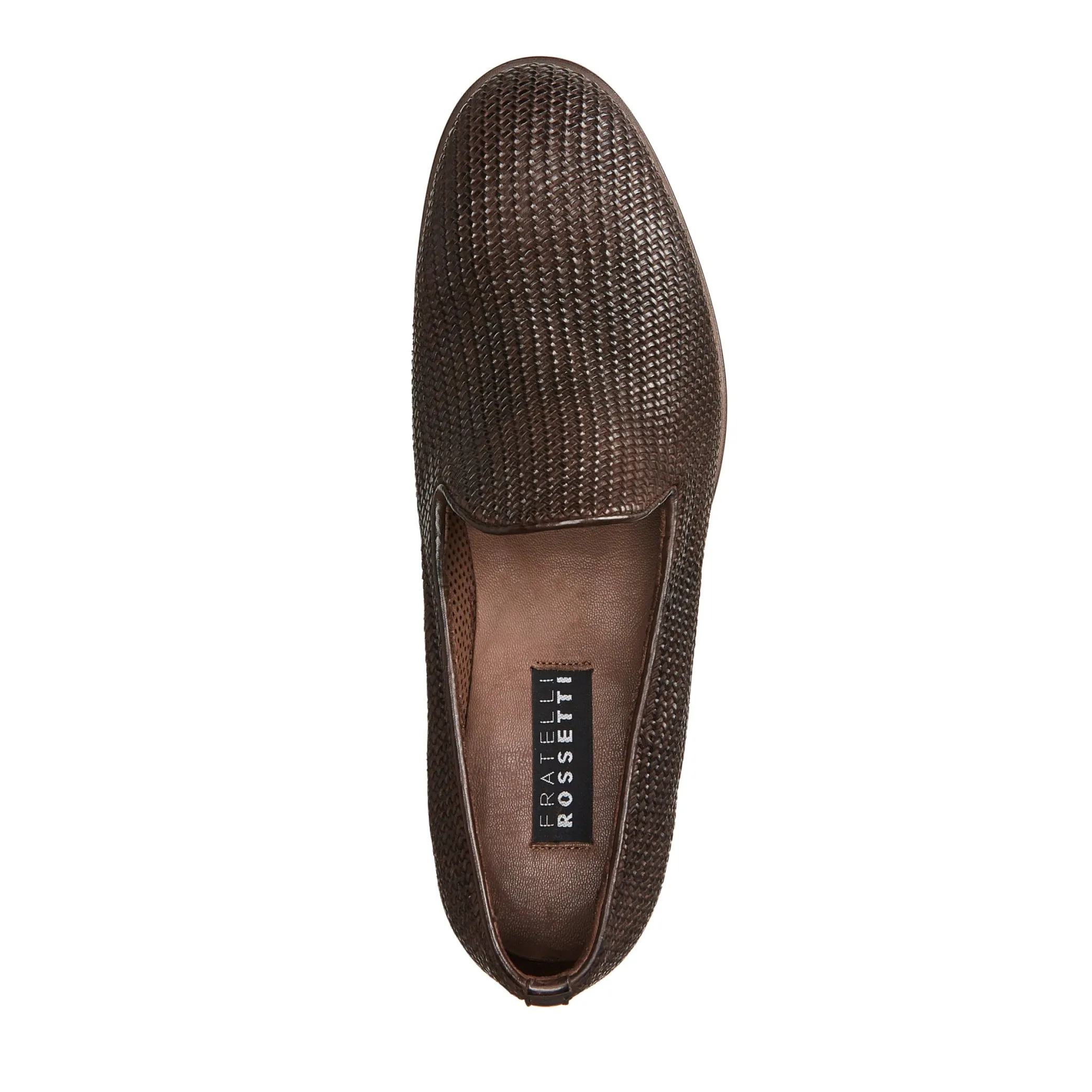 Slipper made of soft woven leather with a shaded, artisan appearance. Maximum comfort is combined with attention to detail in a versatile and timeless shoe. Leather sole.