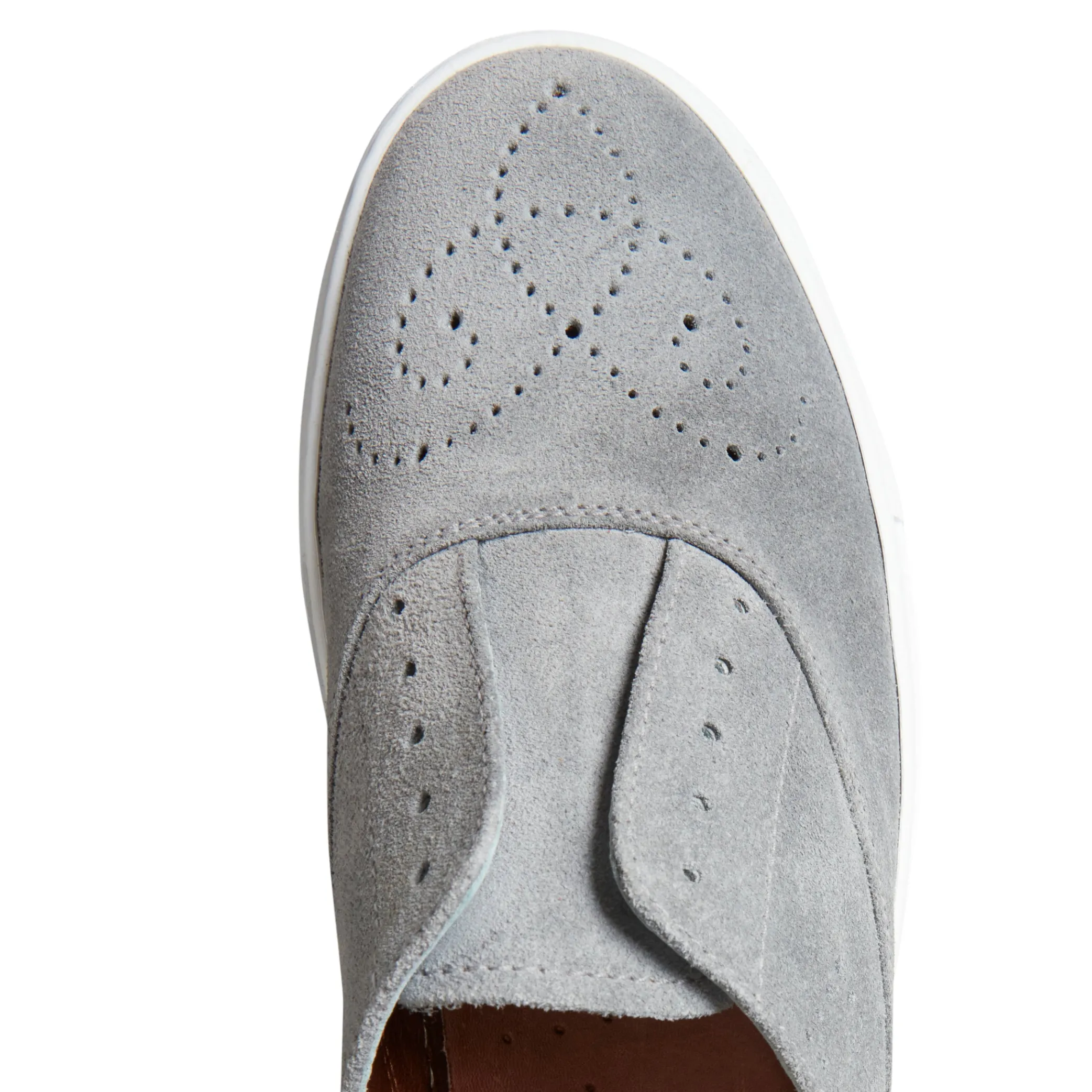 Hobo Sport sneaker with box sole and a hole pattern, made of soft suede. The shoe can also be worn laceless thanks to the practical inner elastic. Rubber sole with customized tread and removable insole.