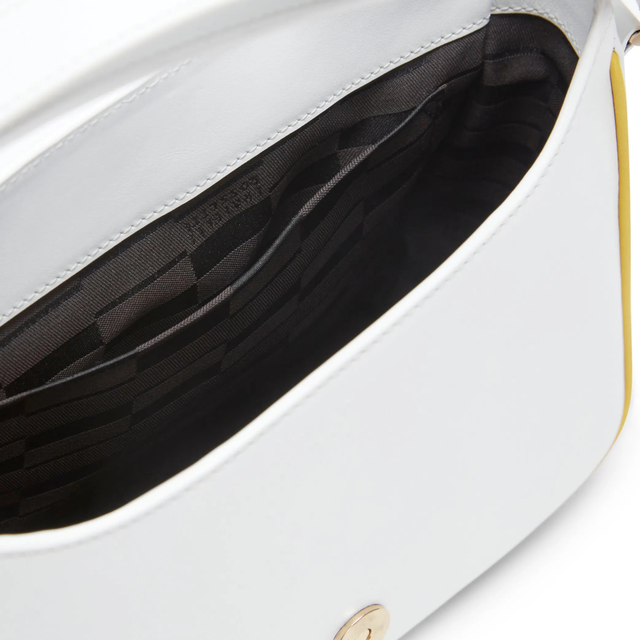 Small handbag made of soft leather. Clean and refined lines embellished with geometric and floral pattern embroidery with a three-dimensional effect. Practical internal zip pocket with logo lining. H16 x L22 x W9 cm